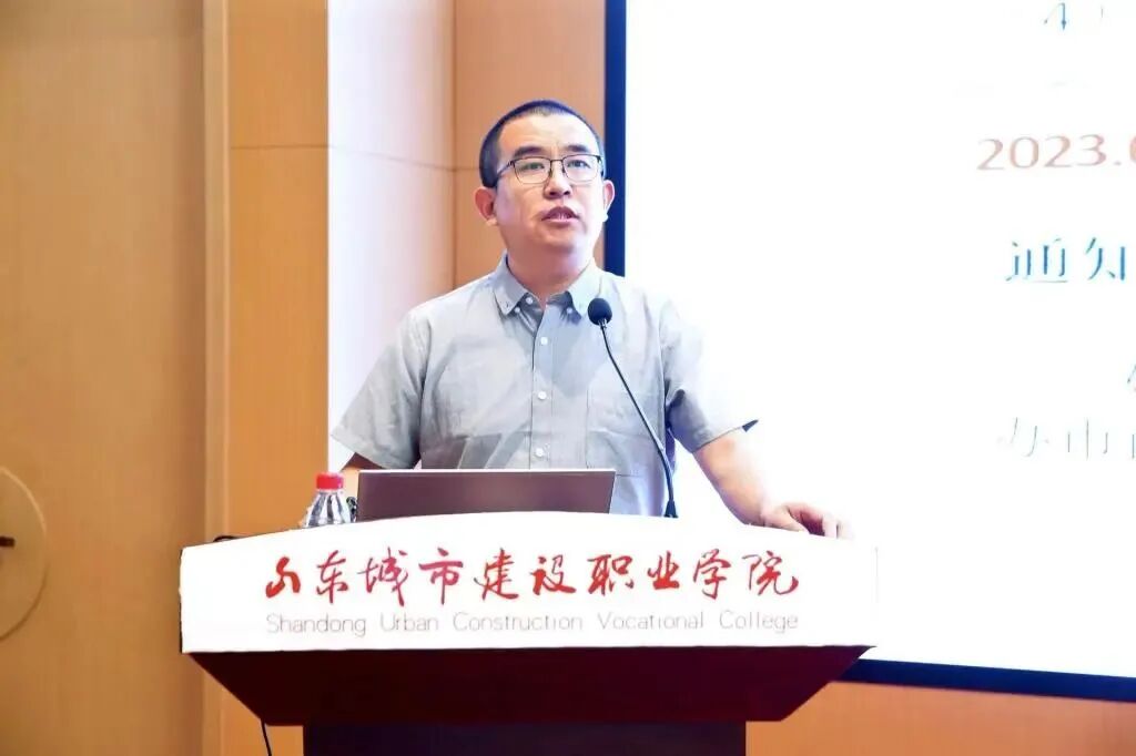 天津城建大学土木工程学院副院长崔金涛以《智能建造试点城市发展现状解读》为题,深入剖析了全国智能建造试点城市的发展路径与政策导向以及天津市的成功经验做法,为山东省智能建造发展提供了借鉴参考,为专业建设提供了政策依据。