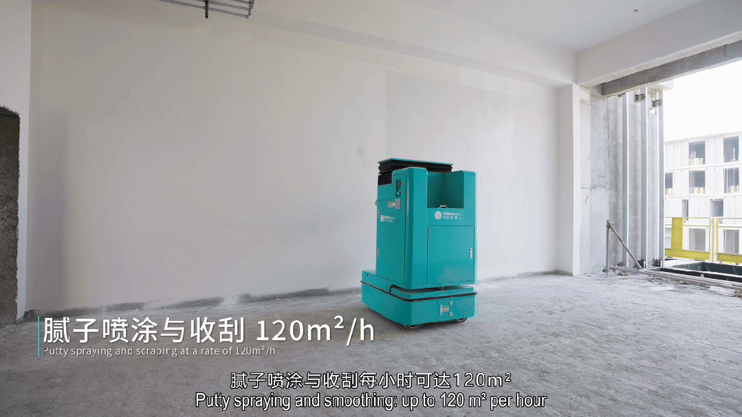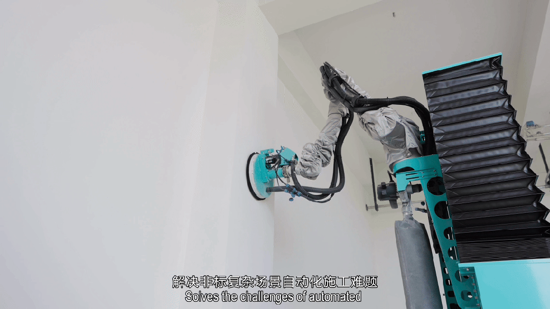 自研“多模态集成执行器”,搭载六维力传感器、视觉传感器等,实时测量力与力矩、位置与速度,通过力/位置/速度混合控制算法配合十轴同算算法,实时动态调整运动轨迹与接触力度,从根本上解决了“复杂基层型面”的行业难题,确保施工质量均匀一致。